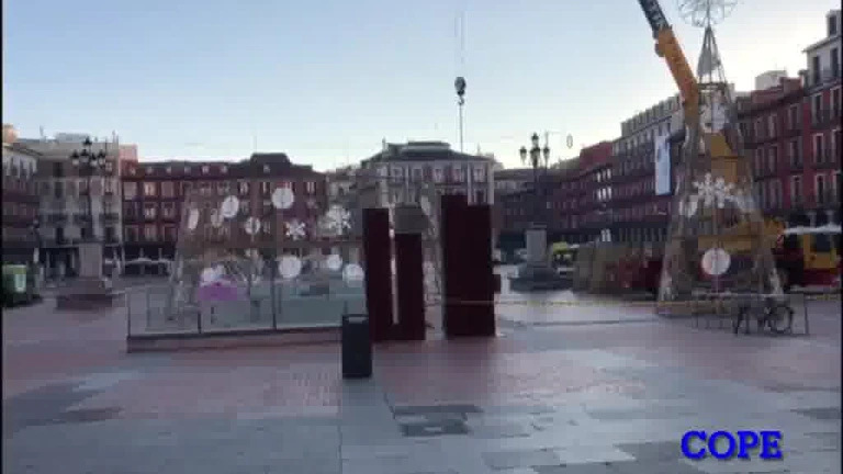 MONTAJE DE LAS LUCES DE NAVIDAD EN LA PLAZA MAYOR DE VALLADOLID