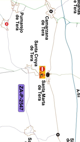 Corte de la carretera ZA-P-1508 entre Santa Marta de Tera y Santa Croya