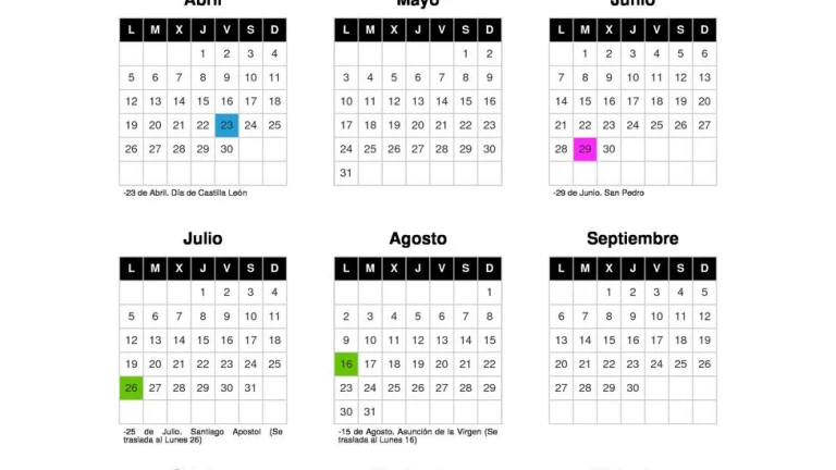El calendario aprobado se establece sin perjuicio de las dos fiestas de carácter local, que en el caso de Zamora determinó que fueran el 29 de Junio,San Pedro ,y el 24 de mayo,la Hiniesta