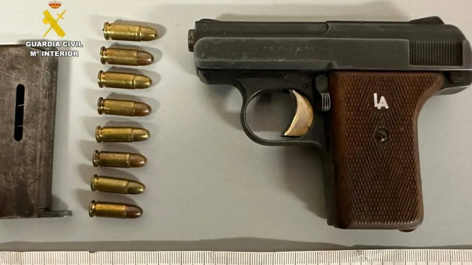 La Guardia Civil interviene por un delito de tenencia ilícita de armas y otro contra la salud pública por tráfico de drogas.