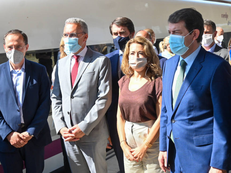 Acto de inauguración que ha contado con la presencia de figuras políticas como la ministra de Transportes y Movilidad, Raquel Sánchez, y el presidente de la Junta, Alfonso Fernández Mañueco,entre otras autorides y responsables de Adif y Renfe