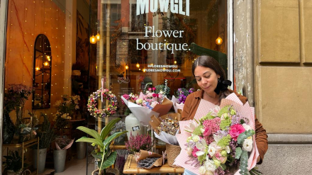 Silvia Jiménez, propietaria de la floristería Mowgli en Barcelona, ha tenido que pagar una multa por poner plantas en la entrada de su fachada y decorar el cartel con flores.