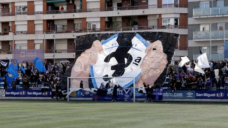 El capitán del CE Europa celebra el ascenso a la Segunda RFEF, la cuarta categoría del fútbol español.