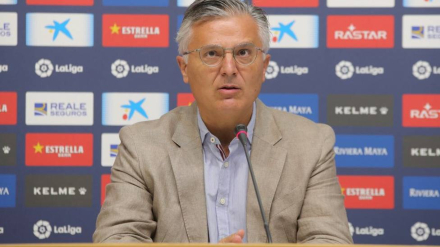 El director general del Espanyol celebra el acuerdo de LaLiga con CVC que reportará 2.700 millones de euros a repartir entre los clubs.