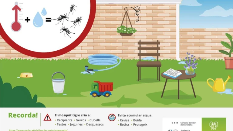 Totes i tots podem contribuir a evitar la proliferació de mosquits fent petites rutines a casa. Fer una revisió cada 5 o 7 dies de les zones exteriors per no acumular aigua és una mesura senzilla i eficaç pel seu control. Amb el mosquit tigre això és especialment rellevant, ja que aprofita petits basals d’aigua en recipients com gerros, cubells, testos o joguines per reproduir-se. Per tant, saber identificar-los, vigilar-los, retirar-los, buidar-los o posar-los cap per vall és clau per reduir els seus punts de cria.