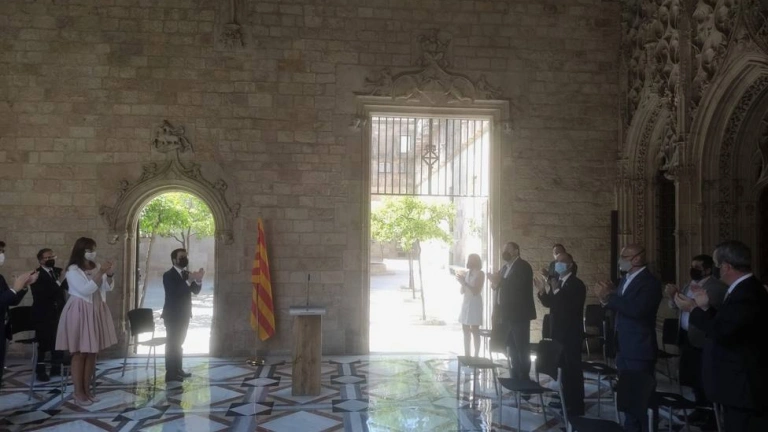 A las puertas del Palau de la Generalitat los han saludado Aragonès y el vicepresidente de la Generalitat, Jordi Puigneró, han posado juntos para una foto, y han entrado dentro de la sede del Ejecutivo catalán, donde han sido aplaudidos por trabajadores y cargos de la Generalitat.