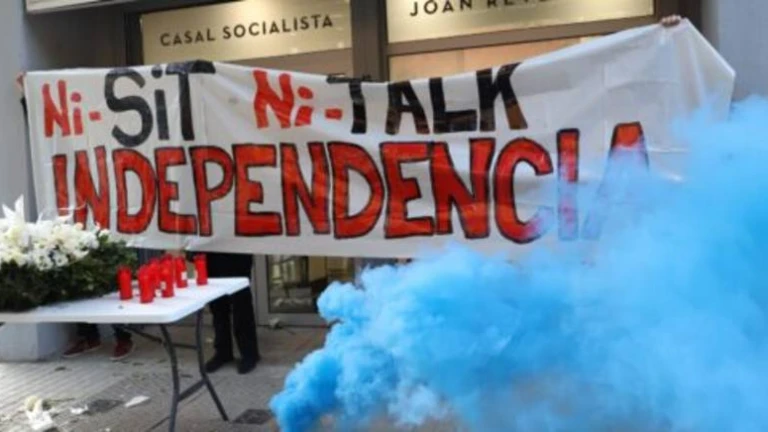 Un grupo de activistas independentistas ha realizado una protesta ante la sede del PSC en la ciudad de Barcelona. En las imágenes emitidas por el periódico digital Vilaweb se observa a una decena de personas, que colocan una mesa ante la sede socialista y depositan una corona de flores blancas y velas rojas simulando un velatorio. La acción es una metáfora que entierra la mesa de diálogo, impulsada por el PSOE desde el Gobierno Central y apoyada en Cataluña por ERC, y forma parte del acuerdo con los republicanos para investir como presidente a Pedro Sánchez. En año y medio solo ha habido una reunión celebrada en La Moncloa en febrero del año pasado, y que la pandemia interrumpió el calendario previsto. Esta es la acción ante la sede del PSC