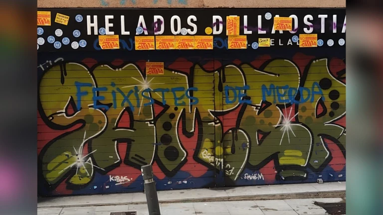 La escalada de la polémica culminó en la madrugada del lunes, cuando la heladería fue vandalizada. La persiana del local, que hace esquina con la calle Vallfogona, apareció cubierta de pintadas ofensivas y adhesivos que denunciaban la supuesta “catalanofobia” del establecimiento. Entre los mensajes, se podían leer frases como “El turismo mata la ciudad”.