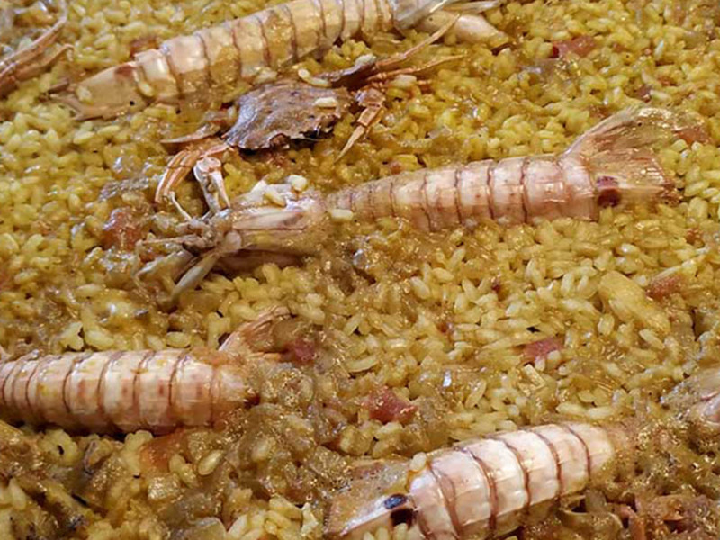 El arroz del delta del Ebro es una D.O.P. (denominación de origen Protegida) y en la comarca se cocina de múltiples maneras. Una de las variedades es el arroz caldoso con galeras. La galera es un crustáceo alargado, con una forma parecida a la de la gamba, aunque más plana y transparente, muy empleada para los caldos de pescado por su intenso sabor. Es un plato similar a una paella pero con más caldo y al que muchas personas, va a gustos, le añaden también rape.