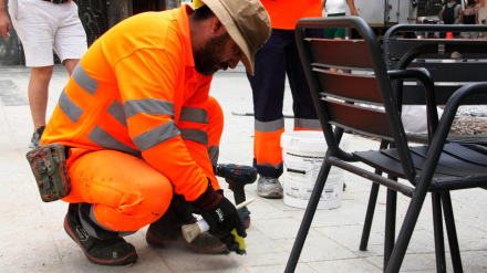 Se han empezado a instalar pequeñas piezas metálicas que delimitan las terrazas para combatir la apropiación indebida del espacio público