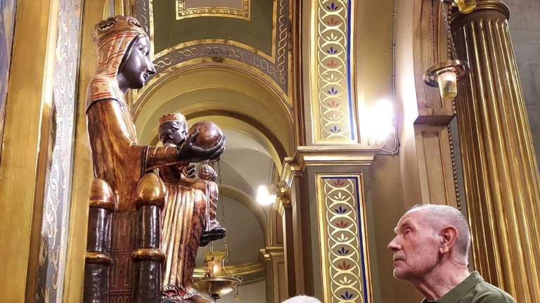 Josep Estruch davant de la Verge de Montserrat
