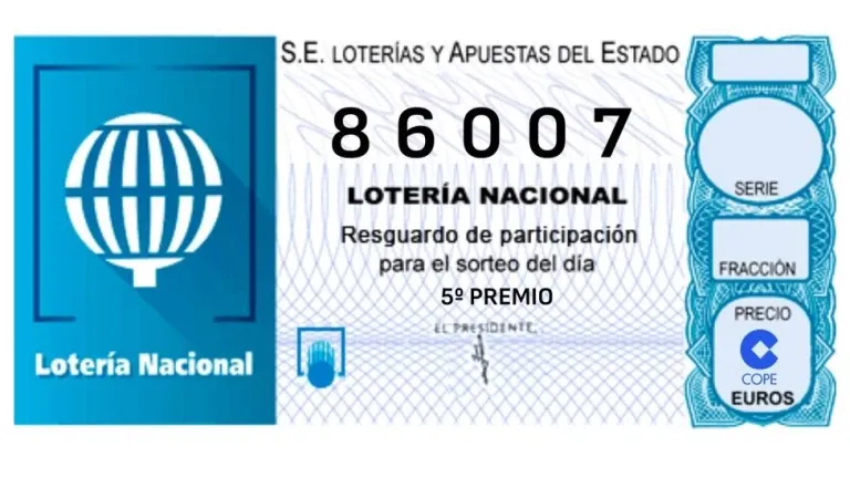 El 86007, el sexto quinto premio de la rifa de Navidad, ha vendido una serie y media en Barcelona y otra en l'Hospitalet de Llobregat. El número ha distribuido también un décimo en los municipios del Prat de Llobregat, Sabadell, Sant Adrià de Besòs, Sant Boi de Llobregat, Santa Eulàlia de Ronçana, Lleida, Mont-roig del Camp, Sarral, Vila-seca.