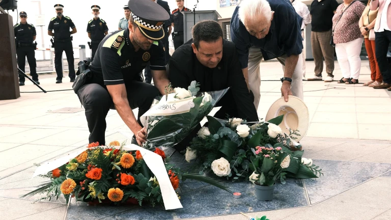 Tras la lectura, el alcalde, el jefe de la Policía Local y una de las víctimas supervivientes del atentado depositaron un ramo de flores en el Memorial per la Pau, situado en el Passeig Miramar frente al Club Nàutic, un espacio que se ha convertido en símbolo del recuerdo y del compromiso con la paz.