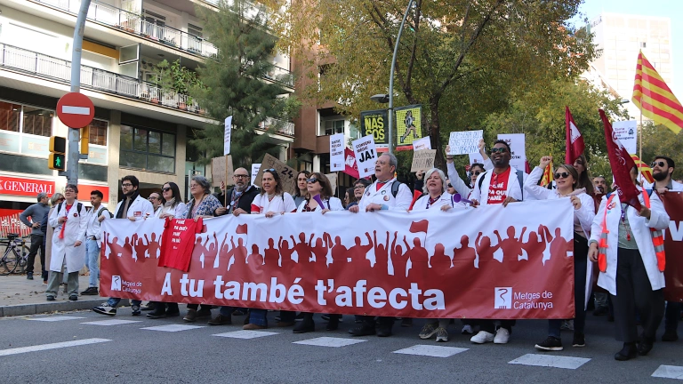 Centenares de médicos han vuelto a salir a la calle en Barcelona en la segunda jornada de huelga para exigir una sanidad “pública y de calidad” y un convenio médico propio, y para protestar por la sobrecarga asistencial y las guardias maratonianas. Bajo el lema “A ti también te afecta”, se han concentrado ante la Facultad de Medicina de la Universidad de Barcelona (UB) y han iniciado una marcha que ha terminado en el Departamento de Salud. A lo largo del recorrido, se han escuchado proclamas como “No es vocación, es explotación” y “Pané, pa qué? Pané, pa na”. Metges de Catalunya ha avisado que las protestas no se detendrán porque los facultativos están “tozudamente alzados”. Ha cifrado el seguimiento de la huelga en un 55%, mientras que Salut lo ha situado en un 7,2%.