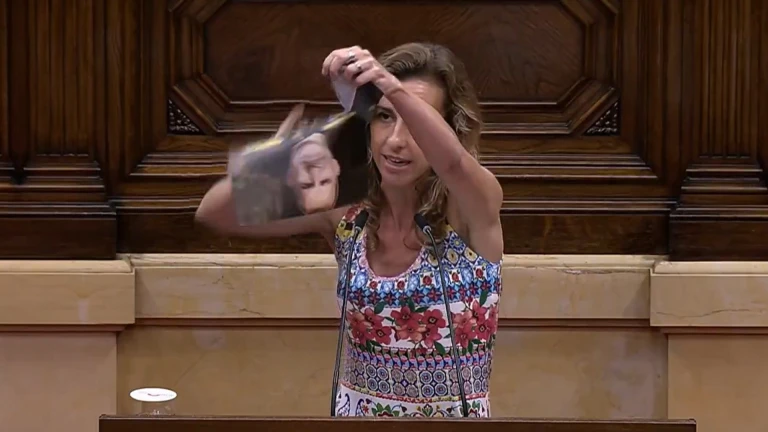 El Parlament ha vivido este jueves un episodio de tensión política cuando la diputada de la CUP Laia Estrada ha roto una fotografía del rey Felipe VI desde el atril, al cierre de su intervención en el debate de una moción presentada por el PP catalán sobre “la debilidad del Estado español en Cataluña”. Este gesto ha provocado las protestas del PP y Vox, que han censurado a la Mesa de la cámara catalana porque no ha intervenido para llamar al orden a la diputada, a diferencia de lo que ha hecho en anteriores ocasiones, con otros diputados, y “por mucho menos”.