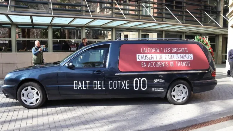 Dos coches fúnebres con la inscripción "Arriba del coche, 0'0" recorrerán diferentes puntos de Catalunya para concienciar sobre el peligro de consumir alcohol y drogas en la conducción.