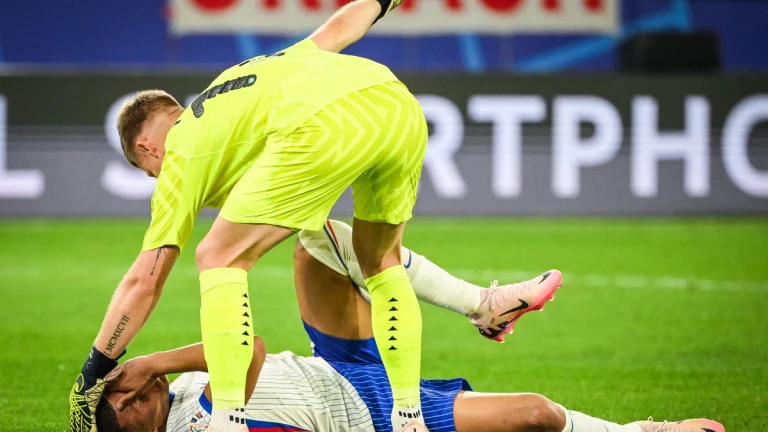 Foto tras un golpe de cabeza entre Vinicius Jr. y Robin Le Normand