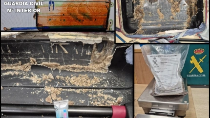 La sorpresa de los agentes fue mayúscula al descubrir que la sustancia estupefaciente no estaba oculta en un “doble fondo”, como suele ser habitual, sino que formaba parte de la propia maleta. La cocaína había sido dispuesta en paneles internos compactados que sustituían a los originales del equipaje.