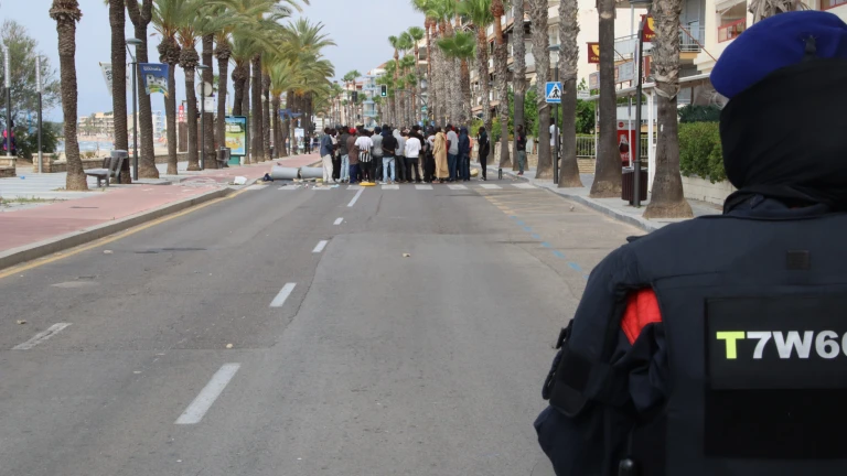 Esta intervención policial ha generado la respuesta unos 30 manteros que se han situado entre la calle del Sol y el paseo Miramar, donde han tirado papeleras y basura en el suelo para cortar el paso.