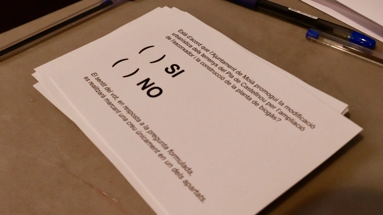 Los vecinos de Moià han rechazado de forma contundente la construcción de una planta de biogás y la ampliación del matadero. El municipio ha celebrado este domingo una consulta ciudadana sobre el proyecto y 1.487 moianeses, el 89,4% de los votantes, han optado por el no. Estaban llamados a participar 5.522 vecinos, de los cuales 151 han votado a favor (9%), 14 lo han hecho en blanco y 11 han votado nulo. Podían participar los mayores de 16 años empadronados en un radio de 2,7 kilómetros de los terrenos afectados.