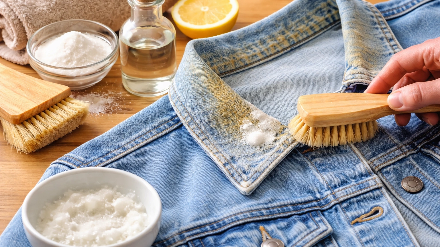 Las chaquetas vaqueras son una prenda imprescindible, pero con el paso del tiempo es muy común que aparezcan manchas amarillentas en el cuello y las mangas, justo en las zonas que más contacto tienen con la piel.