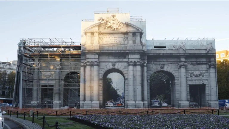 La Puerta de Alcalá comienza a destaparse tras más de un año de restauración