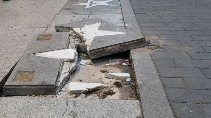 Las placas del paseo de la Fama de Madrid, inaugurado en 2011, están en pésimo estado. Algunas, como la de Penélope Cruz, por actos vandálicos y otras por el paso de furgonetas