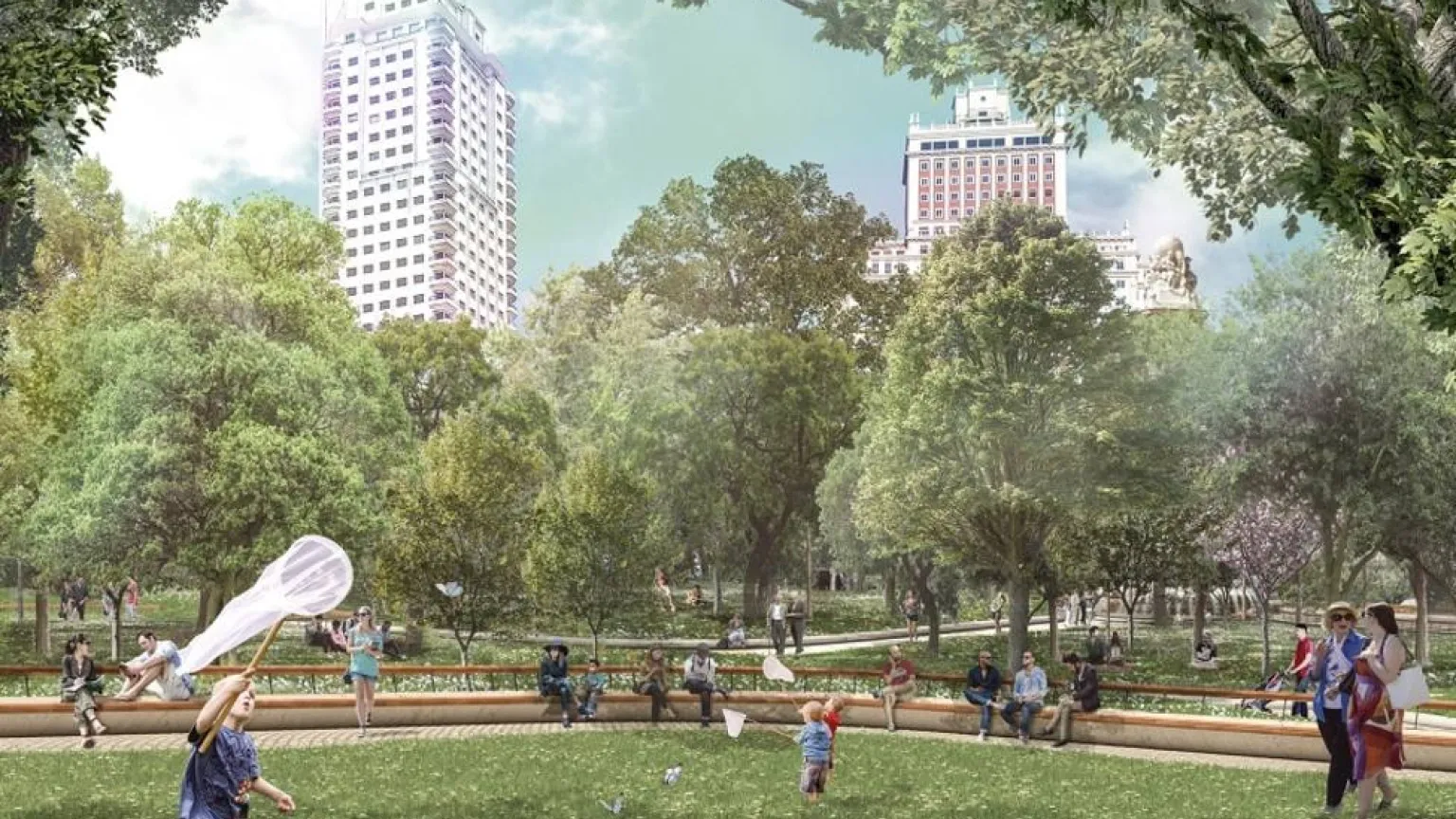 La nueva Plaza de España ya está abierta a todos los madrileños. Nos damos un paseo por este nuevo espacio más peatonal y más verde
