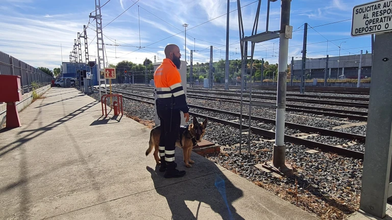 Miguel Ángel es vigilante de seguridad. No va solo a su puesto de trabajo. En la parte trasera de la furgoneta de su empresa va Yago, un precioso pastor alemán de siete años con quien comparte la jornada laboral... y la personal. Porque Yago vive con él, entrena con él, sale de paseo con él. Es el sistema que utiliza la empresa de seguridad contratada por Metro de Madrid para vigilar sus instalaciones al aire libre. Los 13 depósitos que tiene el suburbano repartidos por toda la Comunidad de Madrid.