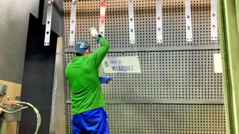 En total, más de 60.000 placas adornan las calles madrileñas, cada una de ellas meticulosamente fabricada en la fábrica Api en Aranjuez. Aquí, bajo la dirección de Carlos Díaz, un proceso que combina la automatización y la artesanía manual da vida a estos símbolos urbanos. Desde el corte de la chapa de aluminio hasta el delicado trabajo de pintura y la aplicación del vinilo, cada etapa es crucial para asegurar su durabilidad y estética.