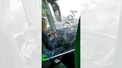 Una conductora de autobús se desentiende del volante para chatear con dos móviles a la vez