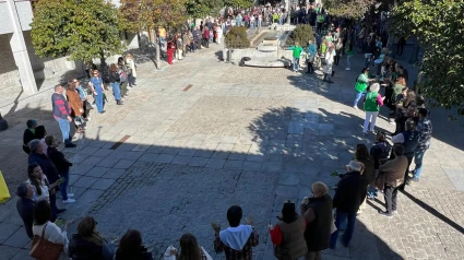 Reto conseguido: más de 250 personas se han reunido este domingo en la Plaza de la Constitución de Torrelodones para hacer un lazo verde humano con el que han querido mostrar su apoyo a los enfermos de cáncer y sus familias en el Día Mundial Contra el Cáncer.