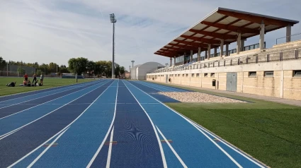 Finalizan las obras de sustitución del tartán de la pista de atletismo de Collado Villalba. Esta mañana, visita oficial y punto de partida para que los atletas puedan utilizarla.