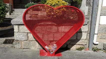 -Becerril ha instalado un gran contenedor con forma de corazón para la recogida de tapones, que irán a distintas causas solidarias
