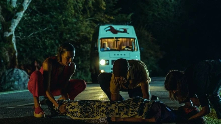 La película se apoya principalmente en sus peculiares personajes, interpretados por Ramiro Blas (Blasco), Cecilia Suárez (Mariela), Cristina Alcázar (Lidia) y Paula Gallego (Marta). Tres mujeres y un hombre que viajan en una furgoneta atropellan a una turista que camina en la oscuridad por una carretera secundaria. Tras subirla al vehículo para llevarla al hospital comienzan a observar su extraño comportamiento y se sumergirán en un ambiente de suspense continuo que permite al espectador pasarlo bien a la vez que siente miedo.