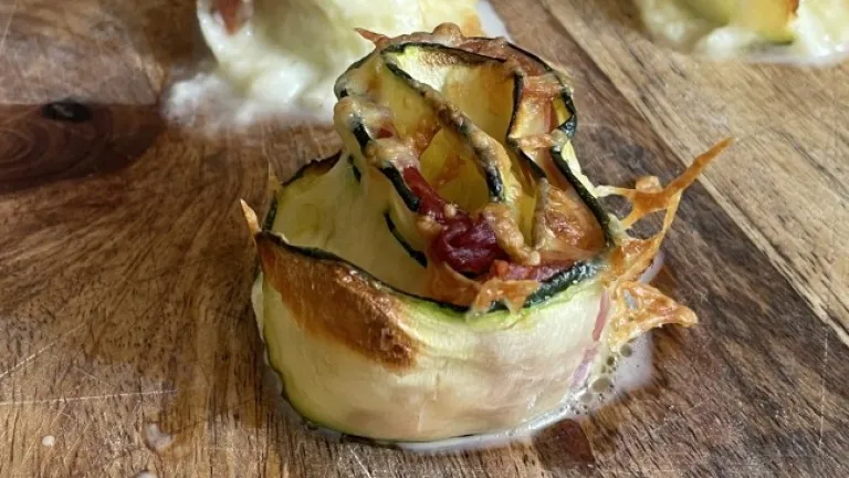 María Marín de Cenas para peques nos prepara para este lunes 27 de marzo un plato muy primaveral en el que vamos a comer verdura de una forma vistosa y divertida. Hoy hacemos unas rosas de calabacín. Además de esta hortaliza lleva jamón serrano y queso en lonchas. Se gratina al horno con un poco de queso. ¡Son muy fáciles de preparar y están para chuparse los dedos!