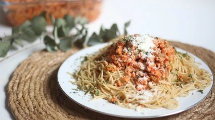 María Marín, escritora, periodista y madre de familia numerosa, nos explica cómo preparar una rica salsa boloñesa con soja texturizada