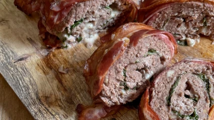 María Marín es vecina de Galapagar, madre de familia numerosa, periodista y autora “Cena para peques” y “Cocinar más en menos tiempo”, nos propone para esta semana un plato contundente. No es para tomar con mucha frecuencia pero de vez en cuando te puedes dar un capricho. Hoy nos hace un rico rollo de carne, queso, bacon y espinacas. Una receta que le va a gustar a toda tu familia. ¿Te animas a prepararla?