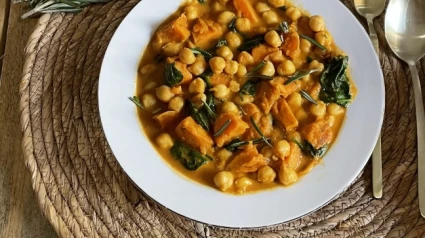 Marían Marín, vecina de Galapagar, madre de familia numerosa, periodista, escritora, autora de los libros “Cena para peques” y “Cocinar más en menos tiempo”, nos prepara un guiso de garbanzos con curry. Una manera muy saludable de comer las legumbres de otra forma. ¡A los niños les encanta!