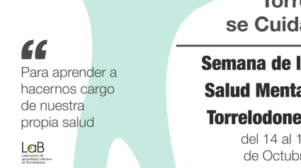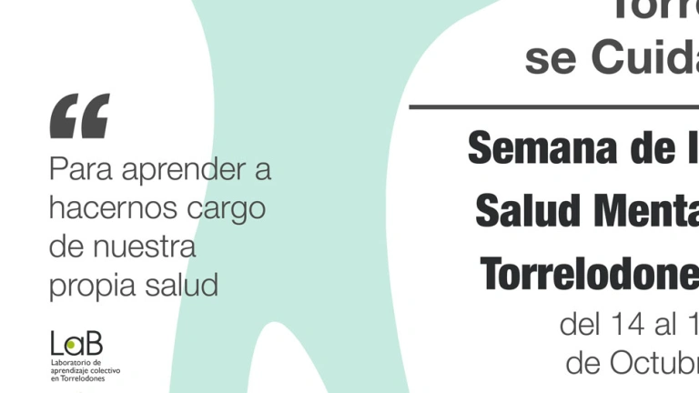 Desde el jueves 14 de octubre, y hasta el domingo 17, Torrelodones acogerá la Semana de la Salud Mental, iniciativa desarrollada por la concejalía de Desarrollo Local y surgida en el espacio LaB (Laboratorio de Aprendizaje Colectivo de Torrelodones). A lo largo de cuatro días tendrán lugar un buen número de actividades, conferencias, charlas… dirigidas a todos los públicos a fin de favorecer la práctica de una vida más sana y saludable. Gracias a la variedad de actividades y contenidos esta programación es de interés para todas las edades al tener como común denominador la conjunción de la salud.
