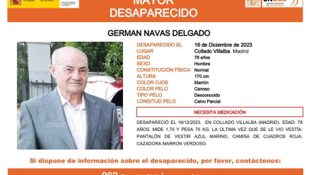 Continúa la búsqueda de Germán, un anciano desaparecido en Collado Villalba este fin de semana