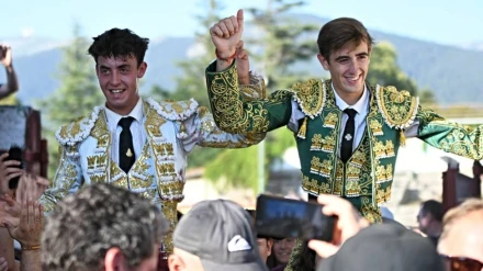 Ambos novilleros salen a hombros tras cortar dos orejas mientras Marcos del Rincón resultó volteado en su primero