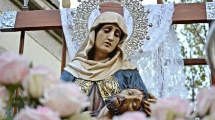 Costalero por un día: COPE de la SIERRA 'se cuela' entre los cofrades que empujan La Piedad de San Lorenzo