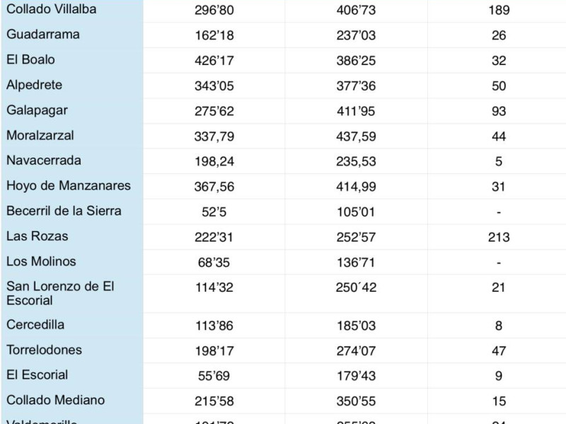 Otra de las cifras más altas de la comarca la registra Hoyo de Manzanares con 367,56 (la semana pasada tenía una IA de 414,99, aunque no se cerró perimetralmente).