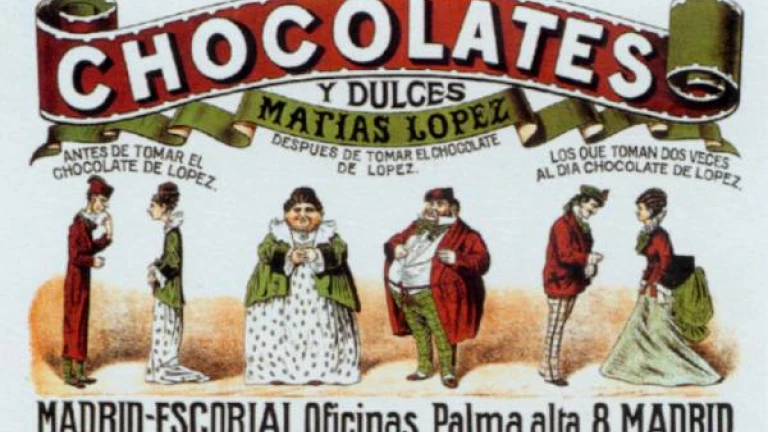 "Los gordos y los flacos". Si ya tienes una edad, seguro que esta imagen te suena. Era la publicidad de 'Chocolates Matías López'. Una viñeta que ha dado mucho que hablar, y más ahora, en la que se recomendaba el consumo masivo del chocolate. Esta fábrica estuvo en El Escorial, fue creada en 1861 y este fin de semana se le rinde homenaje con las I Jornadas del Chocolate.