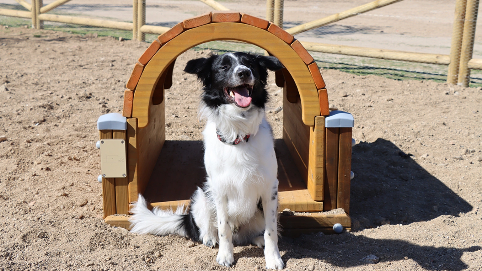 Entre los elementos instalados destacan pasarela, túnel, balancín, empalizada, rampa de saltos, slalom de postes y panel con anillo suspendido, diseñados para favorecer tanto el ejercicio físico como la estimulación mental de las mascotas.