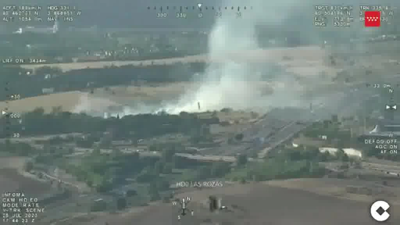La cercanía del incendio y el humo que emanaba ocasionaron complicaciones en la M-50, que llegó a estar cortada al tráfico.
