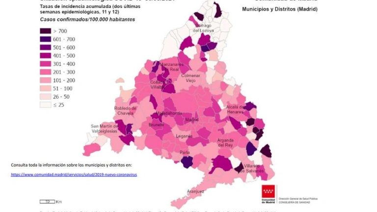 Mapa epidemiológico de la Comunidad de Madrid a 30 de marzo