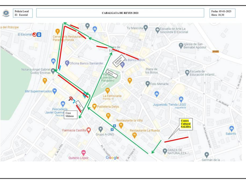Recorrido de la Cabalgata de Reyes de El Escorial