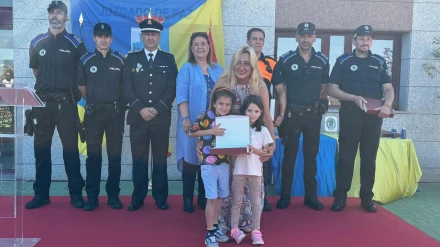 Ánder y Aitana fueron homenajeados como héroes anónimos durante la celebración del Día de la Policía por su patrón, San Juan, que en Torrelodones se adelantó a este domingo